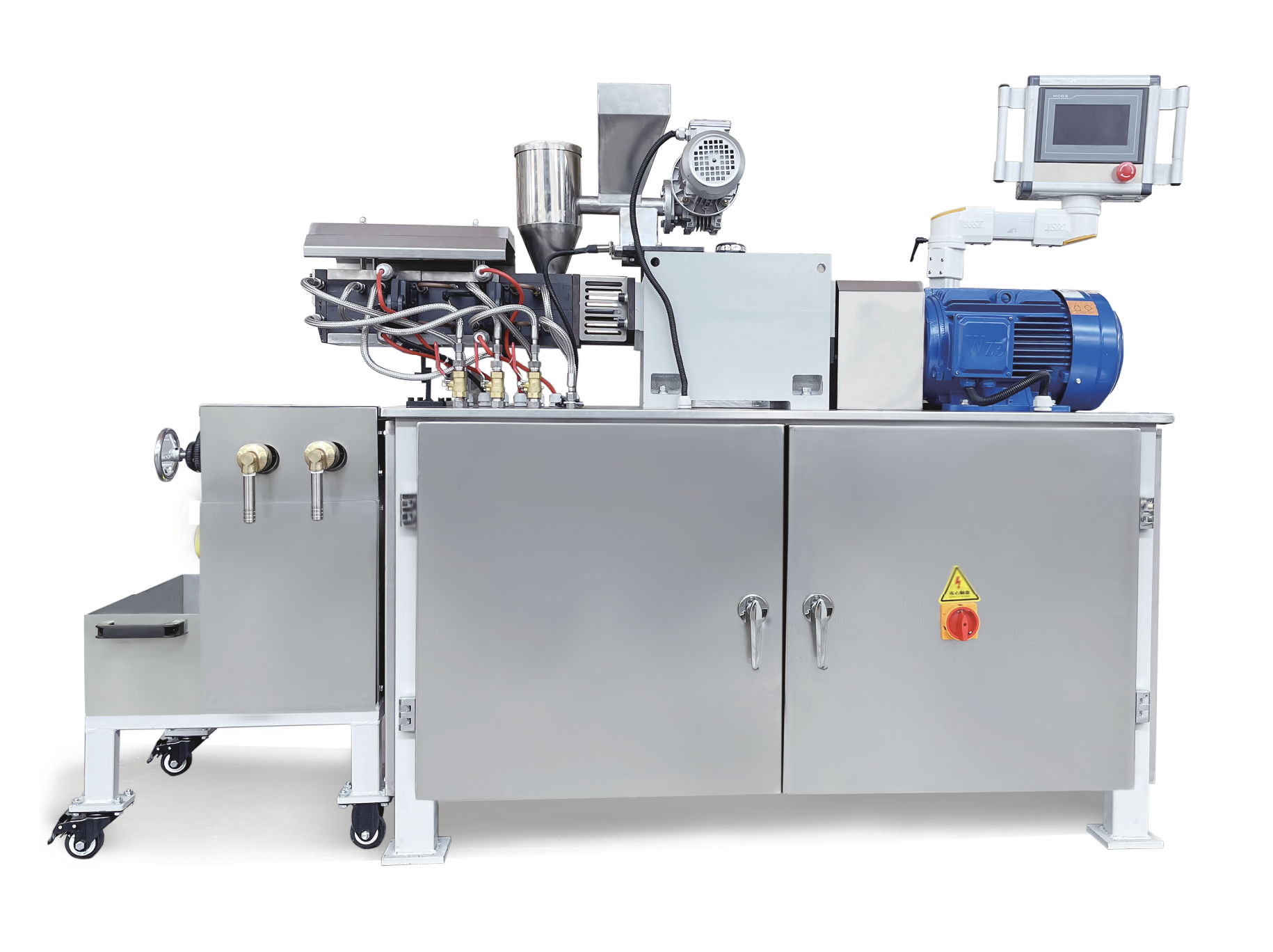 SLJ系列實驗室雙螺桿擠出機設(shè)計新穎,結(jié)構(gòu)緊湊合理,集擠出、壓片于一體,其混煉效果可與大機相媲美,是研制粉末涂料生產(chǎn)工藝、品種開發(fā)、校色的理想設(shè)備。原料在高速旋轉(zhuǎn)精密嚙合塊的作用下,進行充分的分散和分布混合。實驗室雙螺桿擠出機是粉末涂料生產(chǎn)的關(guān)鍵設(shè)備。